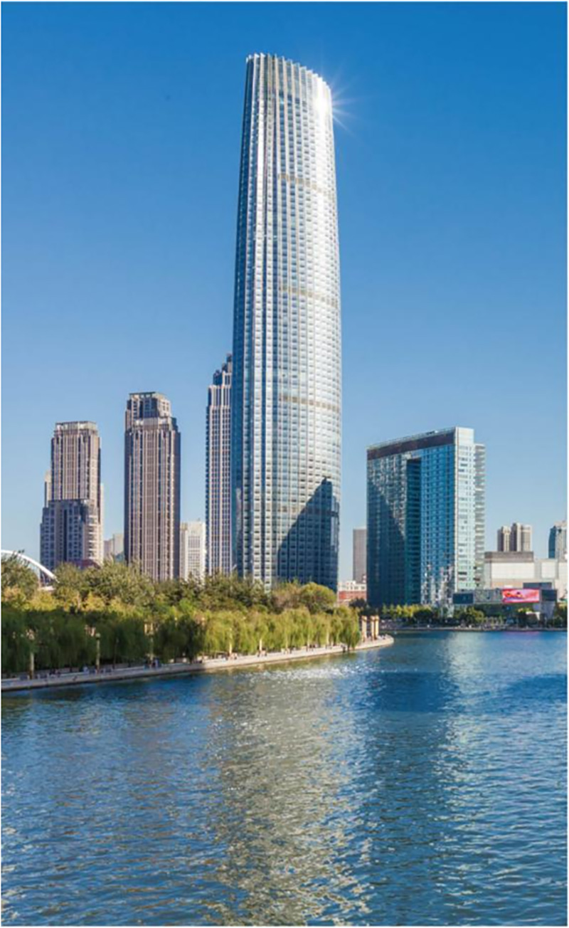 津塔是天津市新的地標(biāo)式建筑,津塔高336.9米,并在中國已建成的摩天大樓中排名第7位,在世界已建成的摩天大樓中排名第25位,總面積約34.4萬平米,混合結(jié)構(gòu),最高75層,336.9米高,其中鋼結(jié)構(gòu)單體最大面積20萬平米。
