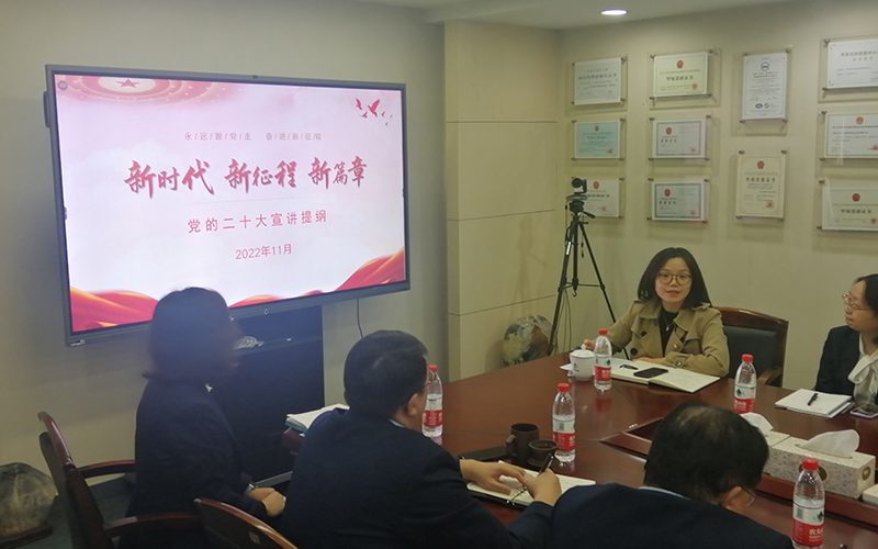 在泛亞公司第二黨支部,公司黨委委員、財務總監楊柳宣講了黨的二十大精神。要求泛亞公司切實提高政治站位,牢記國企使命責任,充分發揮黨員干部模范帶頭作用。要在科技創新上下功夫,深化課題研究,適時調整產業結構,拉長產業鏈條,強化科學管理,加強對青年人才培養,樹牢主人翁意識。
