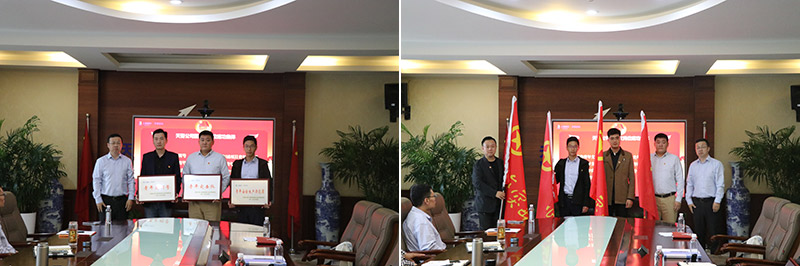 孫亞龍為新組建的崗位建功集體授牌、授旗。