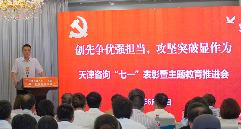6月30日下午,天津工程咨詢有限公司黨委召開“創(chuàng)先爭(zhēng)優(yōu)強(qiáng)擔(dān)當(dāng),攻堅(jiān)突破顯作為”—天津咨詢“七一”表彰暨主題教育推進(jìn)會(huì)。集團(tuán)副總經(jīng)濟(jì)師、調(diào)研員,天津咨詢領(lǐng)導(dǎo)班子、部門經(jīng)理及本部全體黨員,各事業(yè)部、子公司領(lǐng)導(dǎo)班子、部門負(fù)責(zé)人、黨務(wù)干部及黨員、受表彰先進(jìn)代表現(xiàn)場(chǎng)參加會(huì)議。系統(tǒng)全體黨員同步線上收看大會(huì)視頻直播。公司黨委委員、副總經(jīng)理朱震主持會(huì)議。