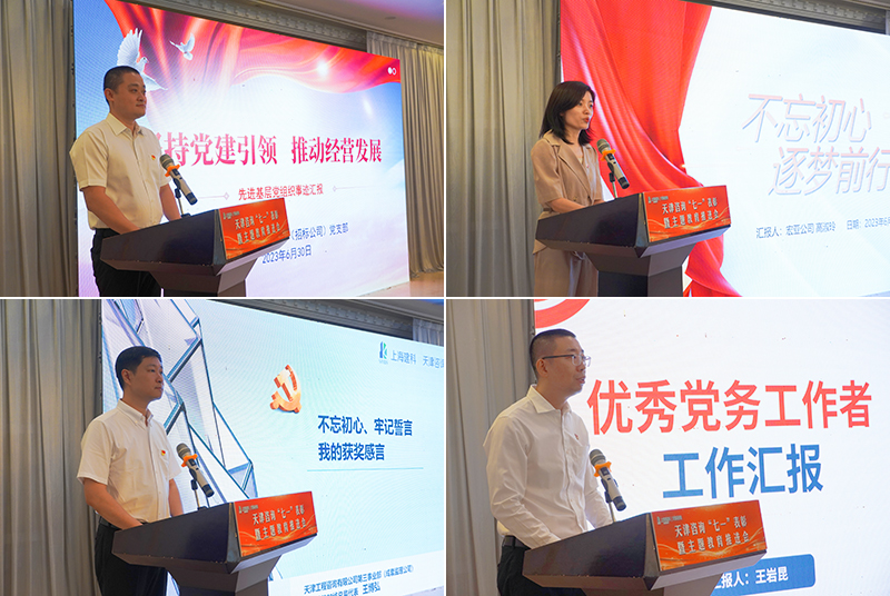 優(yōu)秀共產(chǎn)黨員代表第一事業(yè)部(宏亞公司)高淑玲、第三事業(yè)部(成套監(jiān)理公司)王博弘,優(yōu)秀黨務(wù)工作者第二事業(yè)部(招標(biāo)公司)王巖昆,先進(jìn)基層黨組織天津咨詢第二事業(yè)部(招標(biāo)公司)黨支部書記于浩鵬分別作了交流發(fā)言,表示將牢記初心使命,把榮譽(yù)作為新的起點(diǎn),繼續(xù)發(fā)揮好黨組織戰(zhàn)斗堡壘和黨員先鋒模范作用,為推動(dòng)天津咨詢高質(zhì)量發(fā)展作出新的貢獻(xiàn)。