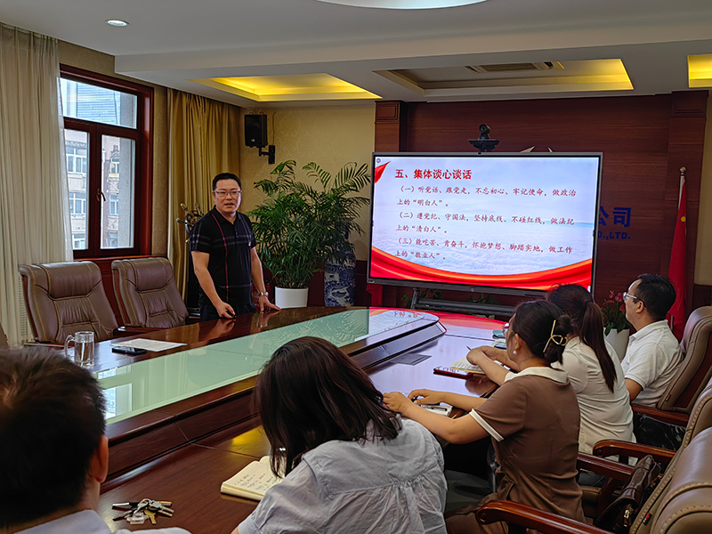 主題教育黨課上,黨支部書記帶領大家原原本本學習了習近平總書記在全國國企黨建工作會議上的重要講話——《堅定不移把國有企業做強做優做大》,以及國企黨組織職責、“四責協同”、黨的紀律、三會一課、主題黨日等黨的基本知識,并重溫了入黨誓詞。通過學習,全體黨員深刻理解了國有企業在經濟和政治上的重要地位和重大意義,進一步明確了國有企業的發展方向和目標任務,紛紛表示將牢記初心使命,扛起責任擔當,把主題教育成果轉化為團結拼搏、奮發進取的智慧和力量,在各自崗位上發揮好先鋒模范作用,齊心協力推進年度任務實現和重點工作落實,向天津咨詢黨委交上一份滿意的答卷。