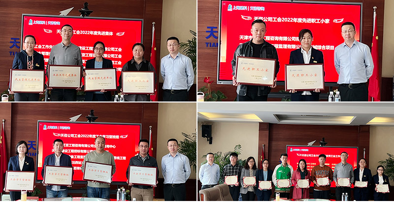 會議表彰了天咨公司工會2022年度工會積極分子、優秀工會工作者、先進職工小家、工會學習型班組、先進職工之家、民主管理先進單位、工會工作先進集體,并進行頒獎。