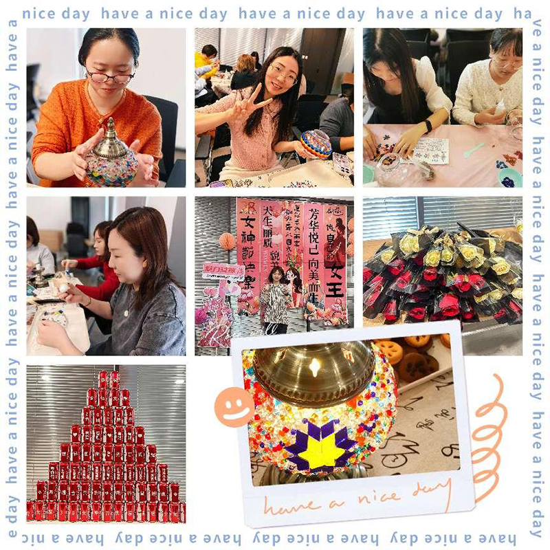 天津咨詢本部工會和建設招標公司工會組織了“指尖上的藝術盛宴,女神的專屬時光”馬賽克土耳其臺燈DIY活動。在專業老師的指導下,女職工們挑選自己喜歡的馬賽克瓷片,通過拼貼、黏合等工藝,將一塊塊小小的馬賽克瓷片變成美麗的臺燈裝飾。大家自由發揮創意,從顏色的搭配到瓷片的排列方式,每一個細節都展現了個人獨特的審美和魅力?;顒幼詈螅毠兗娂婞c亮自己的燈光,在浪漫迷人的燈光中合影留念。
