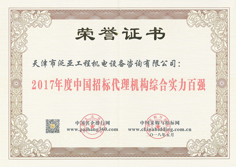 2017招標(biāo)代理綜合實(shí)力百?gòu)?qiáng)