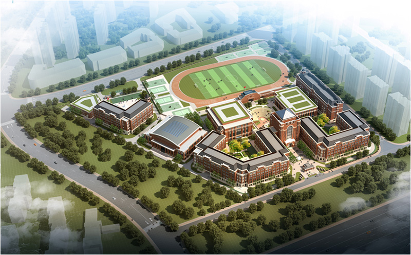 工程總建筑面積8.6萬平米,其中地上建筑包含教學(xué)樓、綜合樓、宿舍、食堂、會(huì)議中心、體育中心、看臺(tái)、國(guó)際部教學(xué)樓及食堂共計(jì)7.4萬平米;地下車庫(kù)及設(shè)備用房建筑面積1.2萬平米。